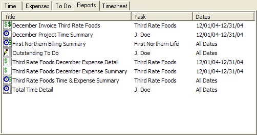 The report list shows all reports. The view can be changed to give a different view of the reports. Switch between the views using the View menu.